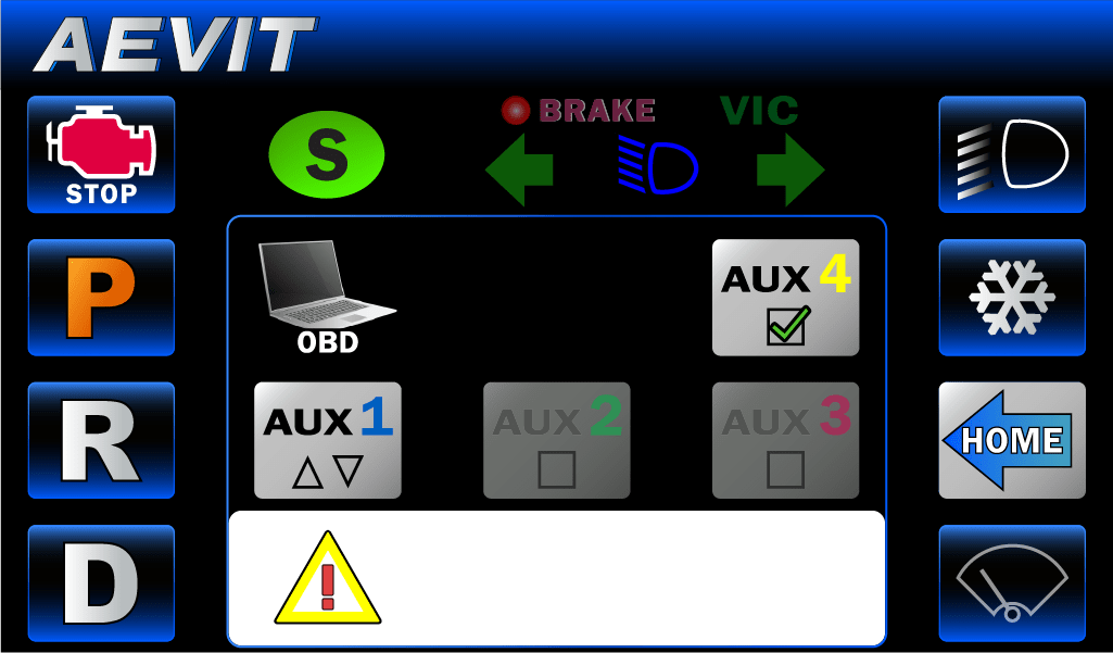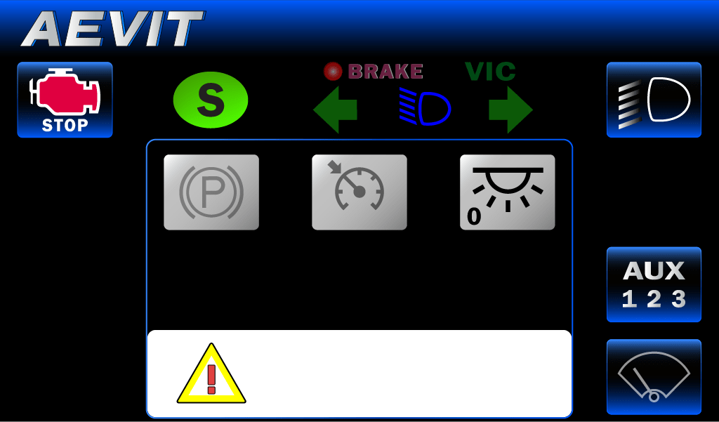 With the GenX Display, the AUX page is expandable to include an additional page with 4 additional programmable auxiliaries. These auxiliaries are programmable to any secondary function within the vehicle. Contact EMC for more details.